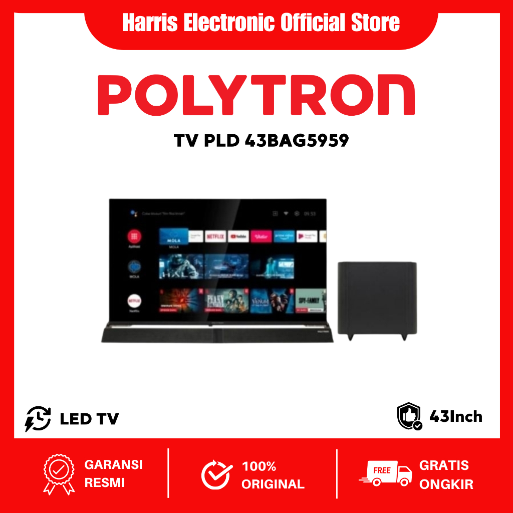 Polytron PLD-43BAG5959 43 Inch Android Smart TV + Soundbar & Subwoofer