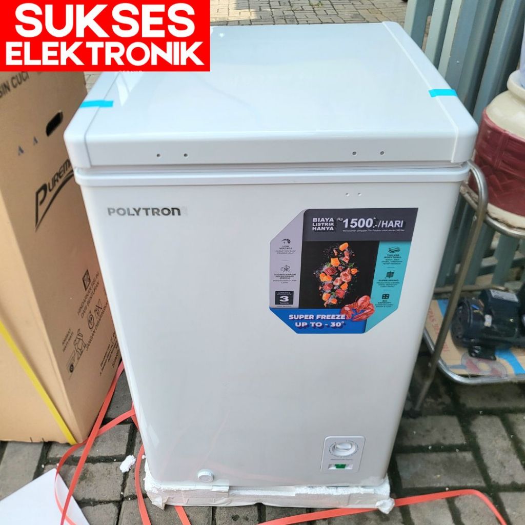 FREEZER BOX POLYTRON PCF-118 100L / LEMARI PEMBEKU ES DAGING 100 LITER L CHEST FREEZER