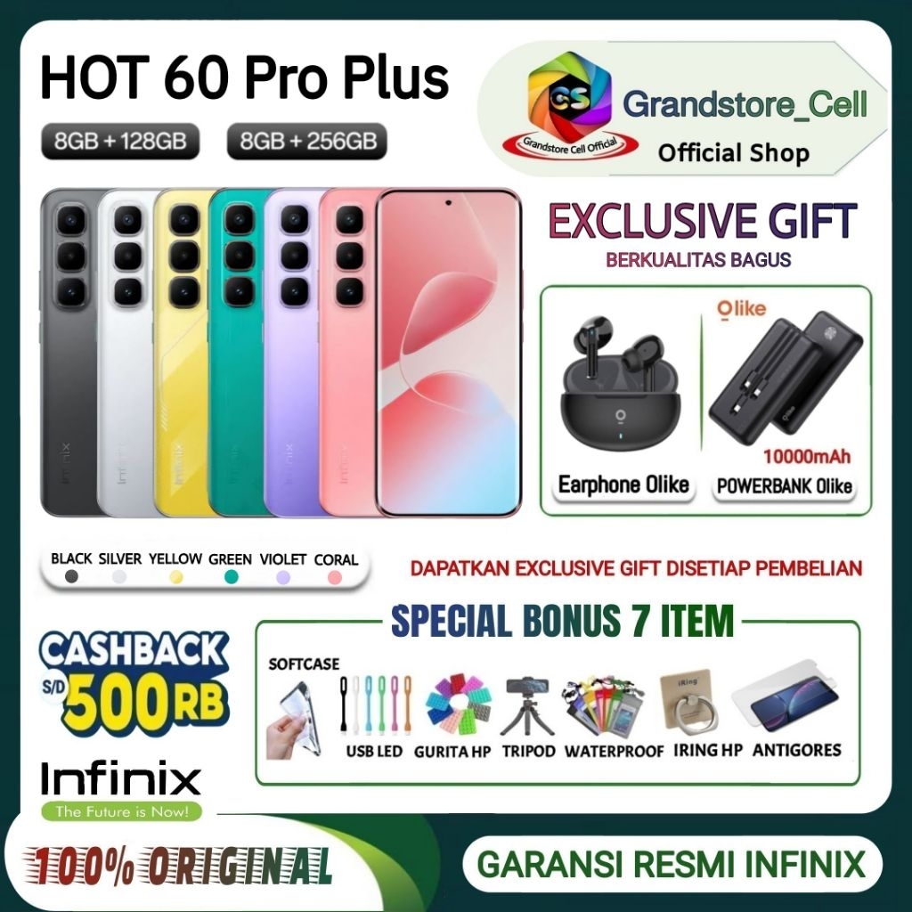 INFINIX HOT 60 PRO Plus [8/256GB] [8/128GB], Dust Tight And WaterResistant, GARANSI RESMI INFINIX INDONESIA - HOT 60 Pro+