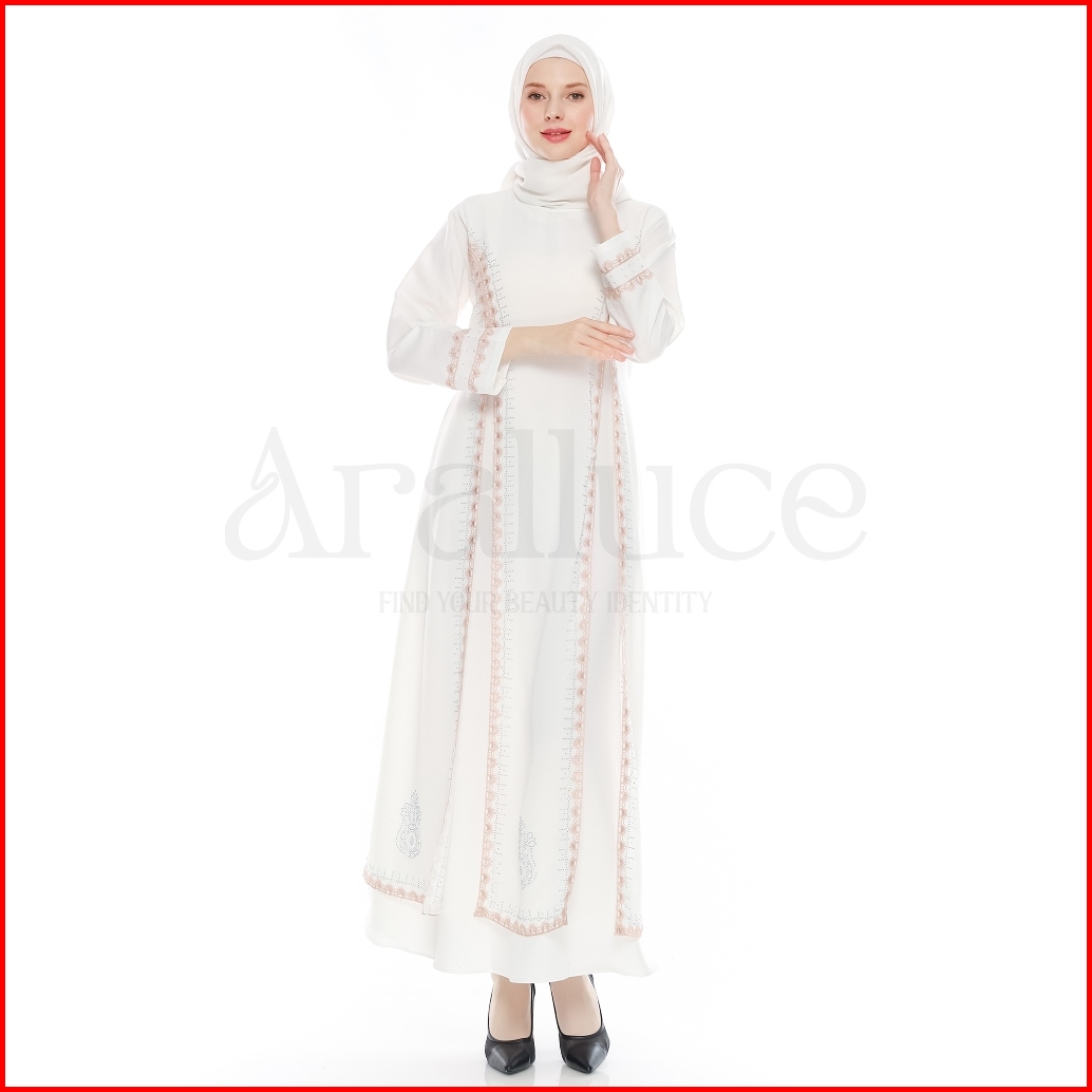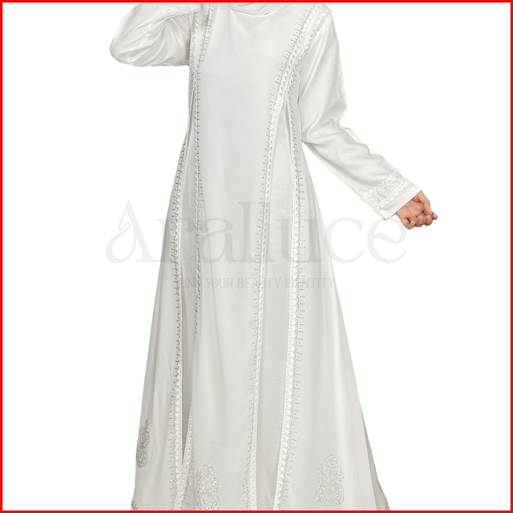 Aralluce Dress Abaya Putih Turkey Terbaru Arl 044 - Gamis Putih Wanita Kekinian Mewah Dan Elegan