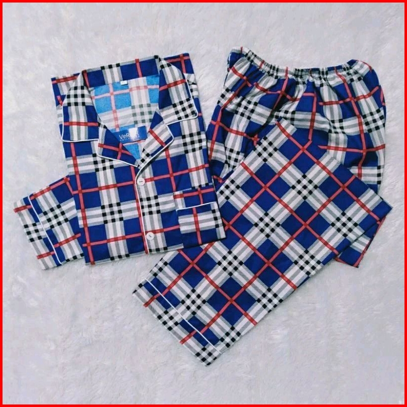 Verifel Piyama Kotak Baju Tidur Pria Wanita Remaja Dewasa Jumbo Bahan Katun Impor Lembut Harga Grosir Fit To 85 Kg