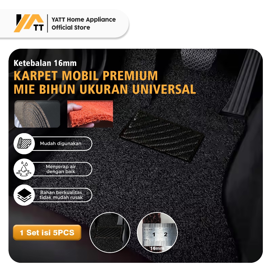 YATT Karpet Mobil 5 Pcs - Mie Bihun PVC - Ketebalan 16MM Universal bisa diaplikasikan ke semua mobil