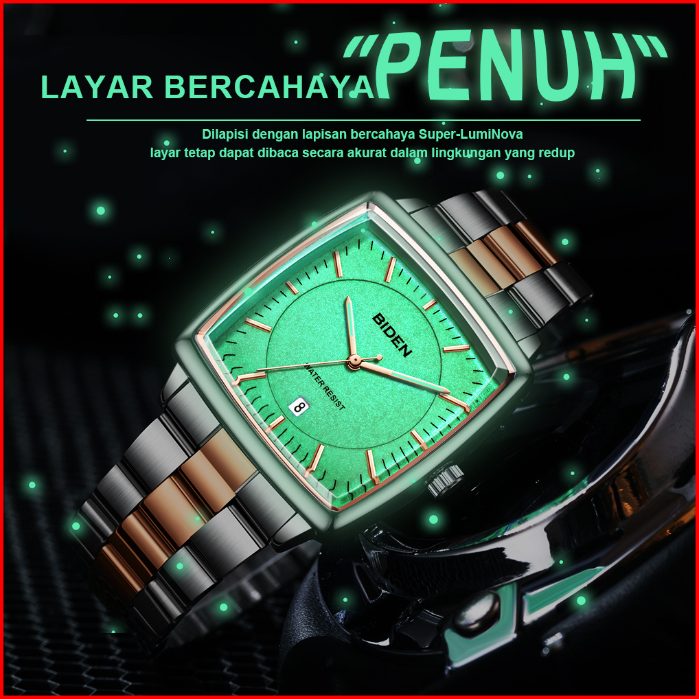Biden Jam Tangan Couple Anti Air Original Fashion Multifungsi Kalender Luminous Tali Stainless Steel Jam Tangan Pria Jam