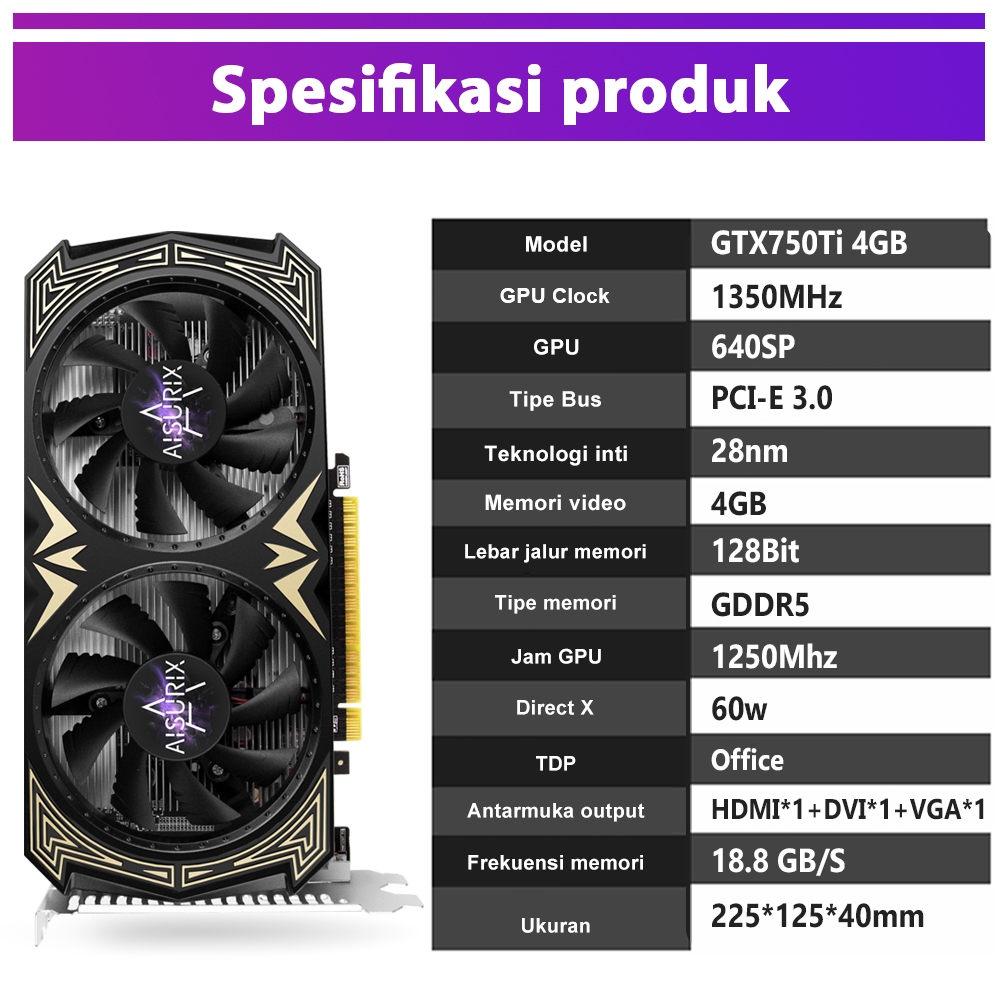 AISURIX VGA card GTX 750TI 4GB GDDR5 128BIT HDMI DVI DP GTX750ti VGA