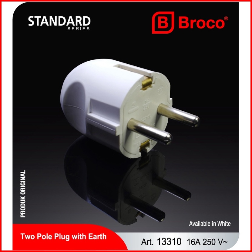 Broco Electrical Steker New Arde Kepala Colokan Listrik Steker Arde Putih 2 Pcs 13310-55
