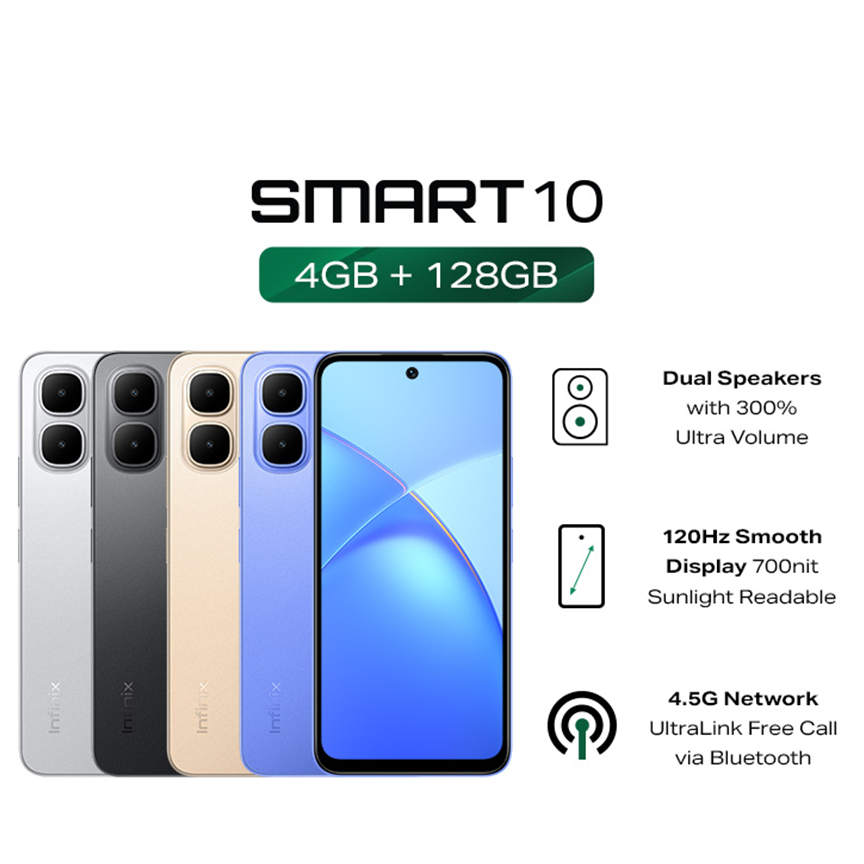 NEW - Infinix Smart 10 RAM 4/128GB - 6.67 inch 120Hz HD+ - T7250 - 5000 mAh - Up to 8GB Extended RAM