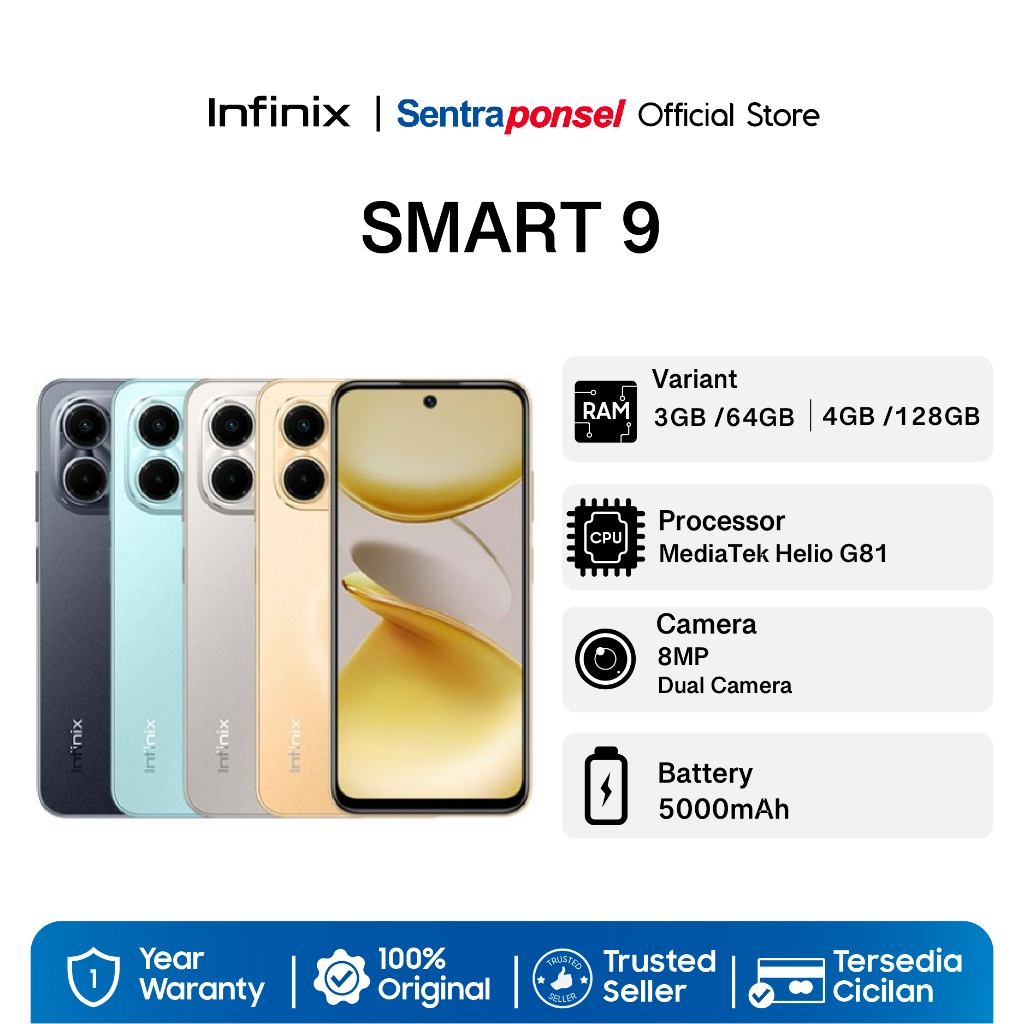 Infinix Smart 9 HD - 4/64GB - Up to 8GB Extended RAM - 6.7 inch Punch Hole Display - Helio G81 - 5000 mAh