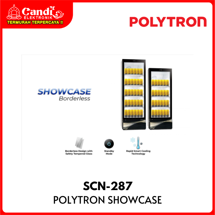 POLYTRON Showcase SCN-287 Fast Cool 280 Liter Gross Capacity 5 Rak Anti Fogging Glass Door