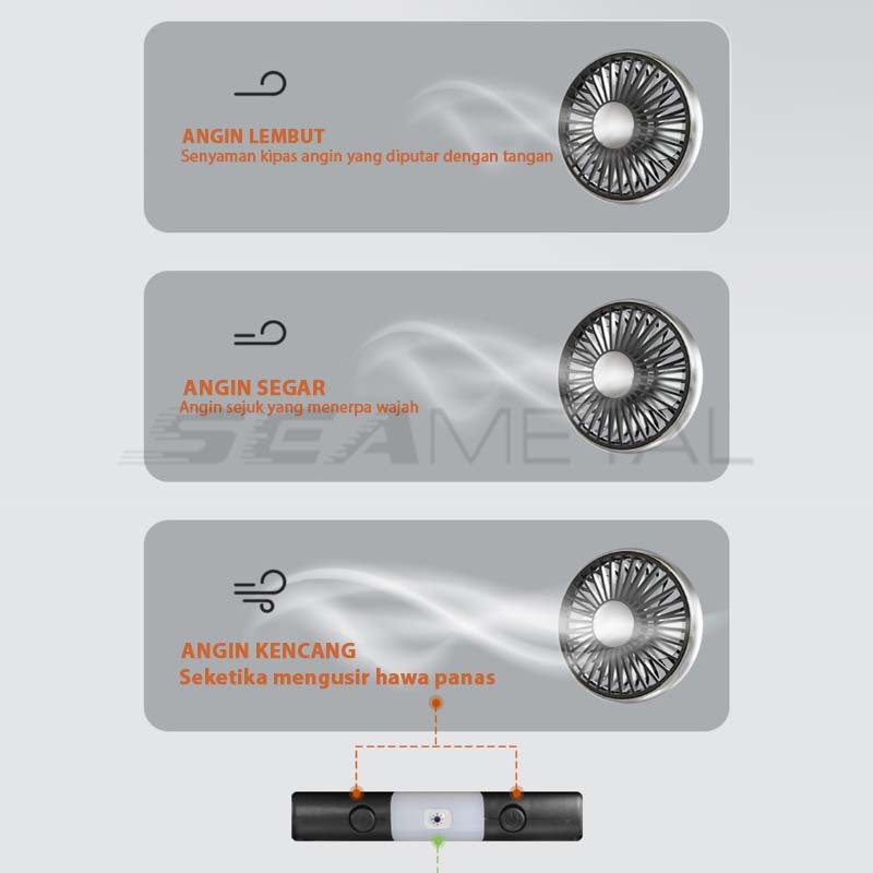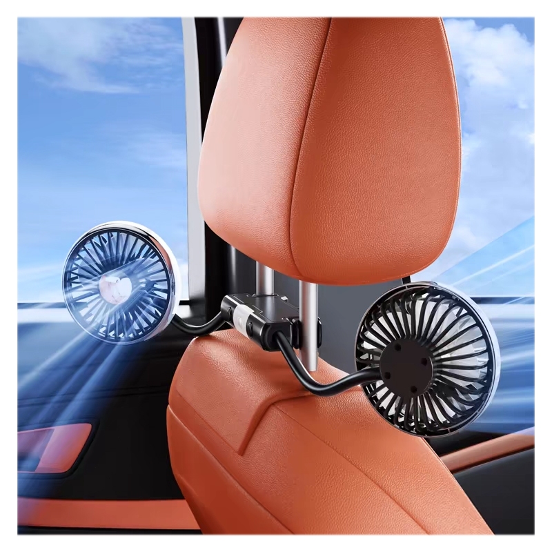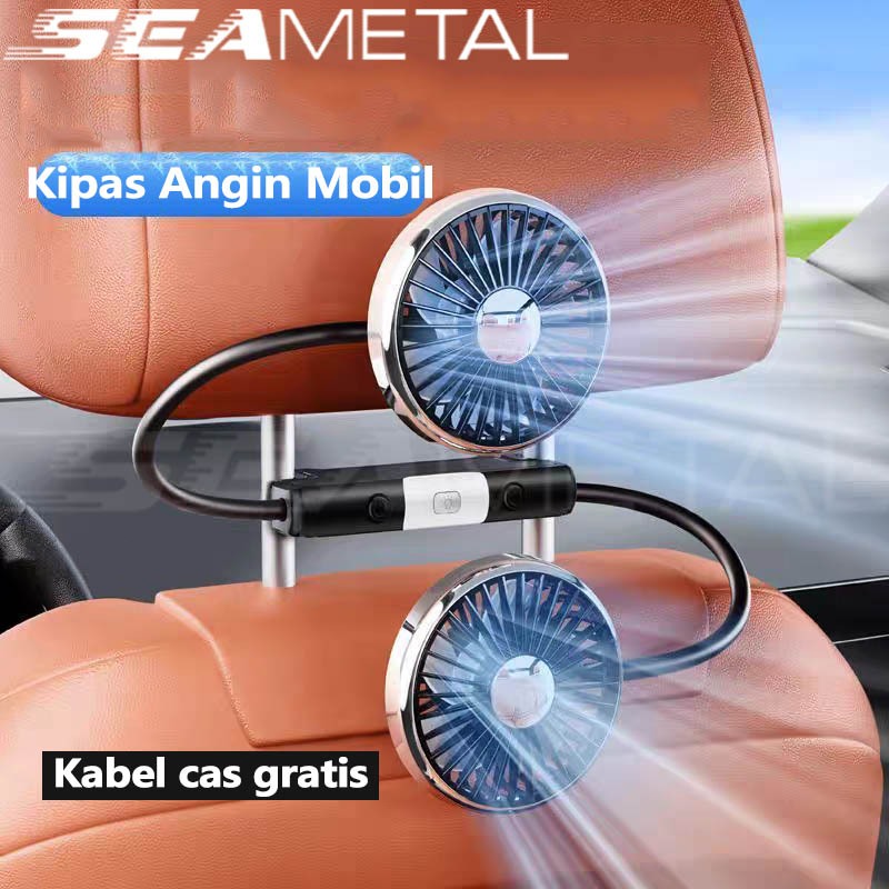 SEAMETAL Kipas Angin Mobil Kipas Angin Belakang Penumpang Kipas Angin USB Kipas Portable Double Headed Fan Mobil