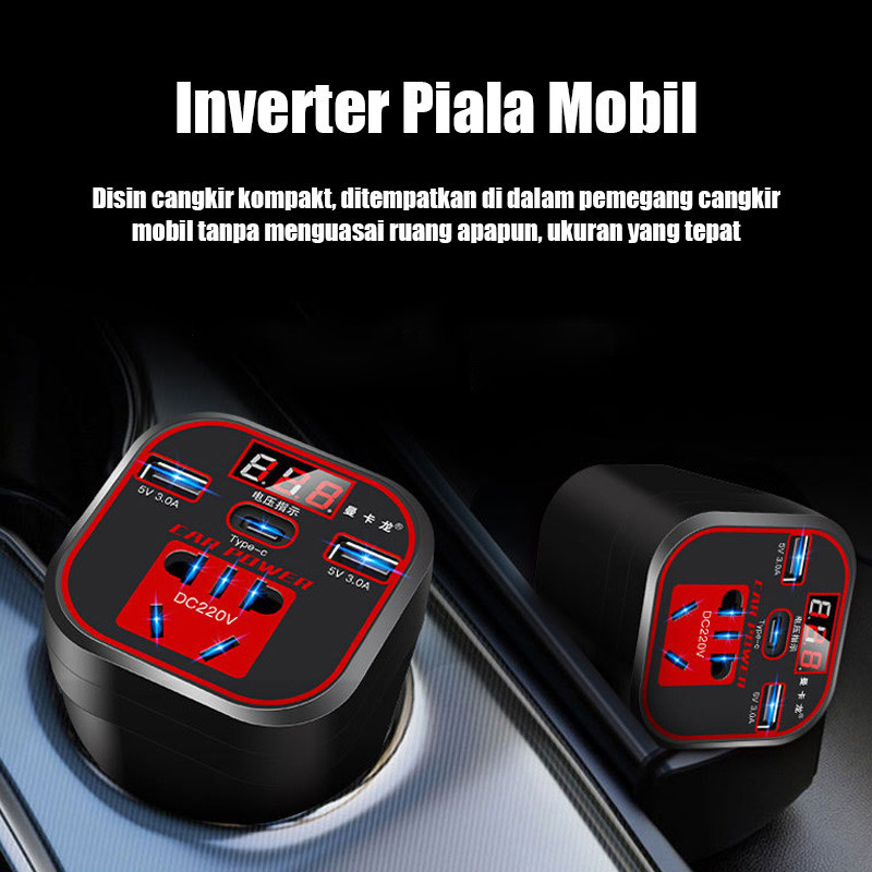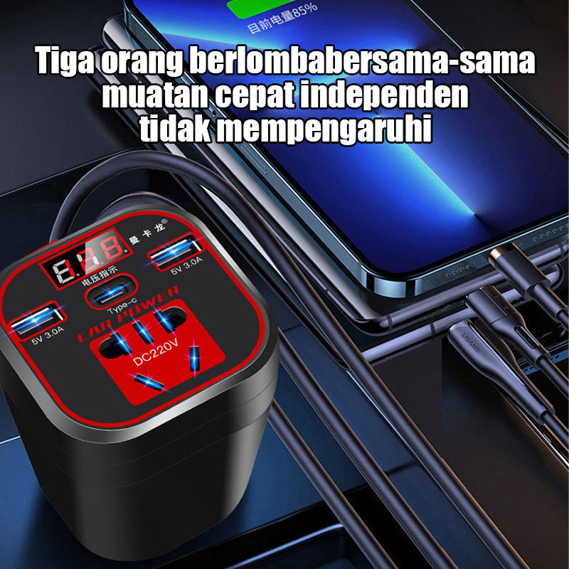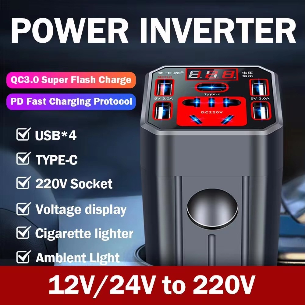 Inverter Daya Mobil 220V 12V/24V Pengisi Daya Mobil Khusus Dengan 2 Port USB + 1 Port Type-C