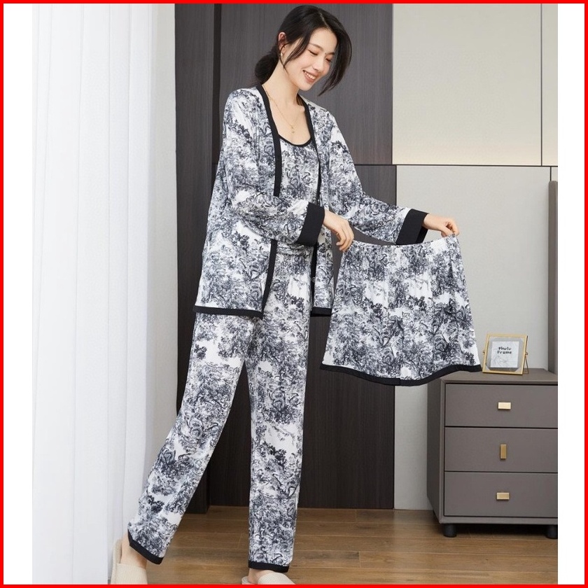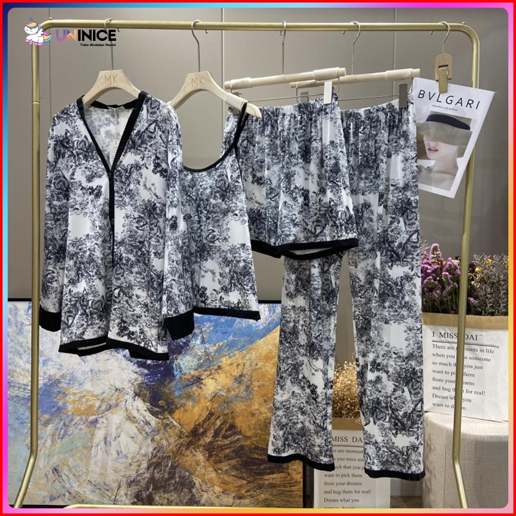Uninice Piyama Wanita Gaya Cina Homewear Musim Panas Es Sutra Tipis Longgar Ukuran Besar