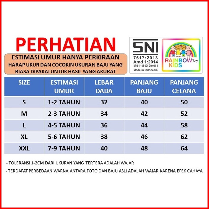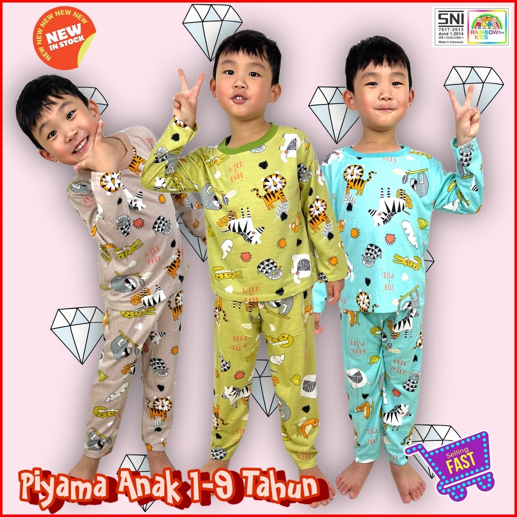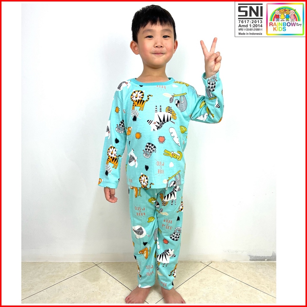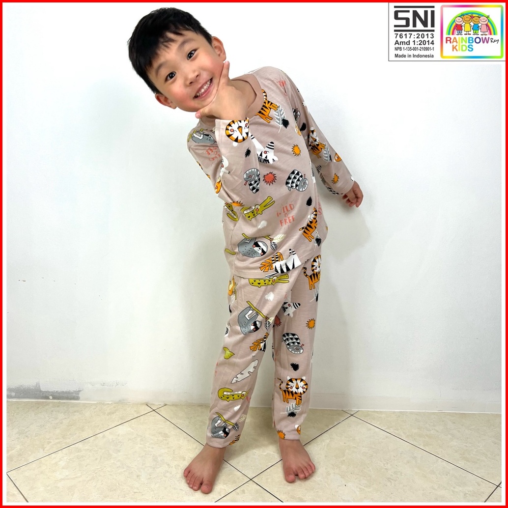 Rainbow - Setelan Piyama Anak Pp Rib Unisex 1-9 Tahun Wild Free