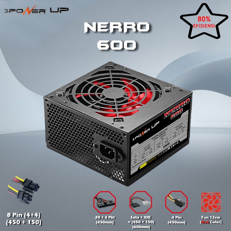 Casing Gaming/PC/Office RAPTOR POWERMAX 770 - with PSU NERRO-600 & 2 FAN RGB + USB 3.0