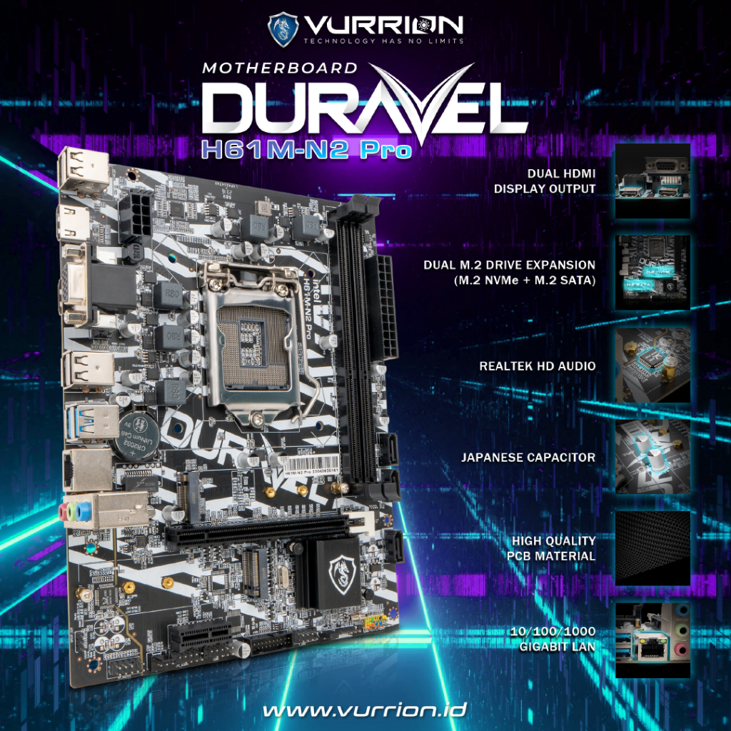 Motherboard H61M-N2 PRO Duravel Vurrion Intel LGA 1155 - Mobo H61 Mb Gen 2 / 3 Chipset Intel B75 Mainboard Support Slot SSD Nvme Garansi Resmi 2 Tahun