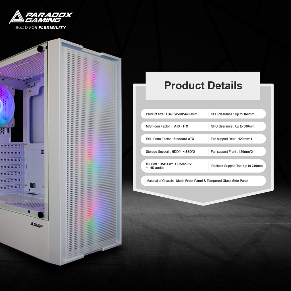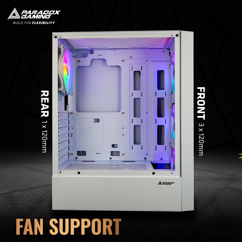 Paradox Gaming Moonslash White & Black + 4x RGB Fan | PC Casing ATX | CPU Case Gaming