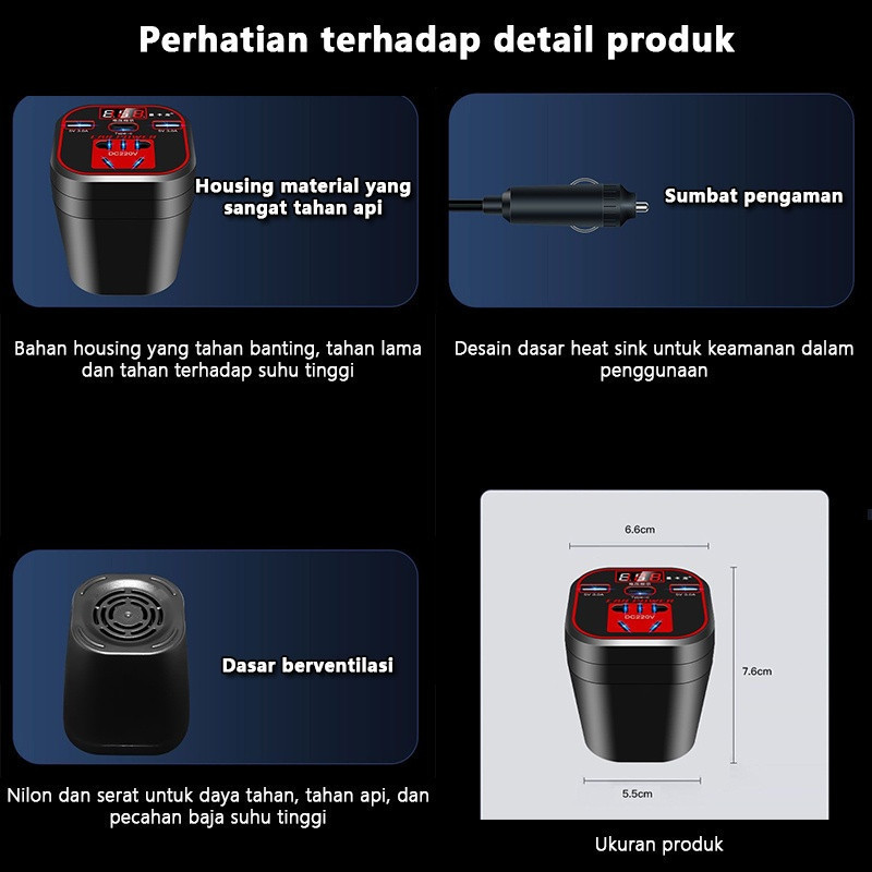 Inverter Mobil 200W 12V/24V Pengisi Daya 220V Charger Mobil 2 USB LED Tampilan Digital Taffware