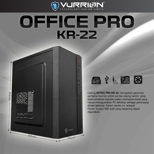 Vurrion KR 22 Casing Komputer M-ATX Include PSU 500 WATT