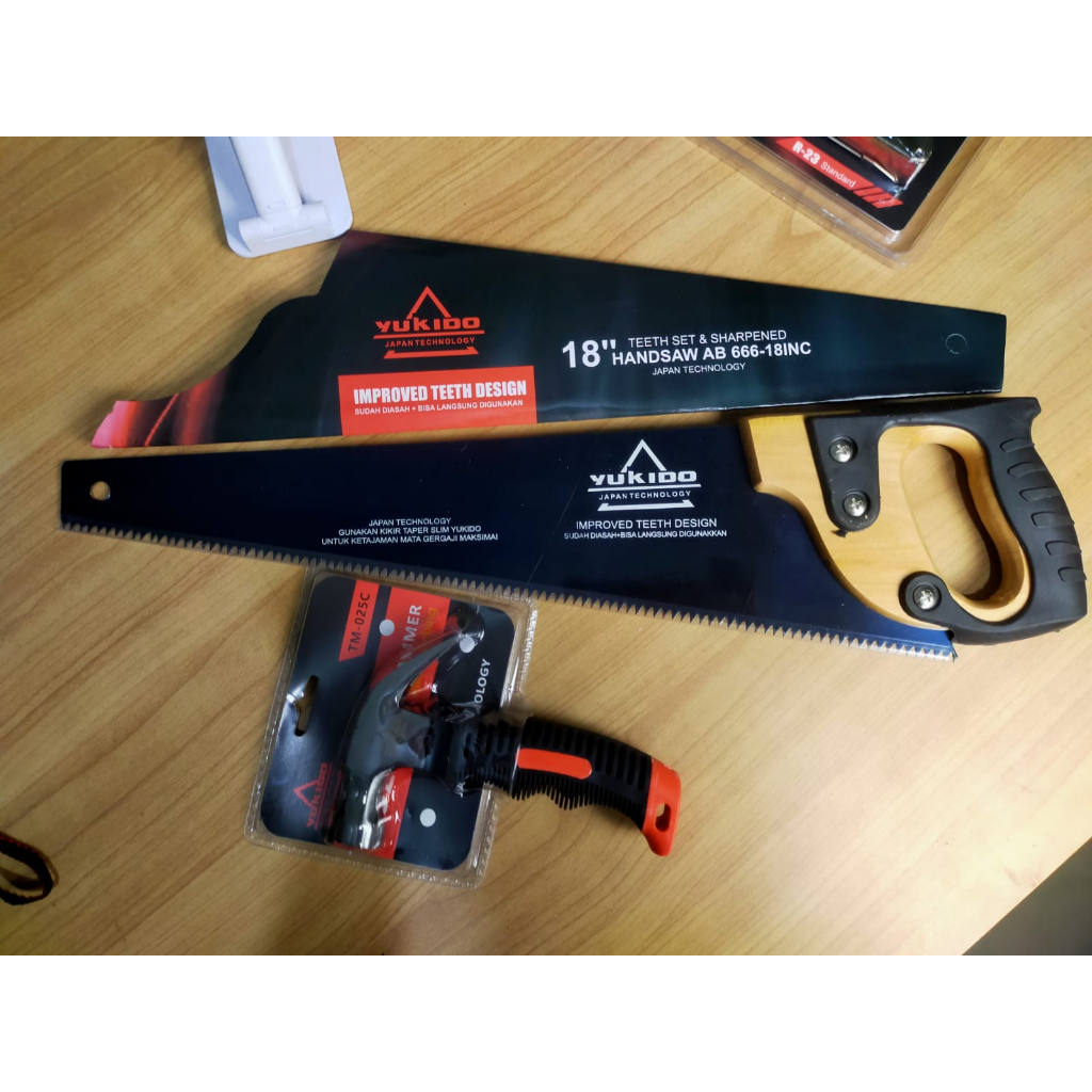 Paket Lengkap Alat Tukang 3in1- Gergaji Kayu Gergaji kayu Gorok GERGAJI TANGAN 18 inch Super Tajam Gagang kayu lapis karet Palu Kambing Cabut Paku Meteran Ukur 5 Meter murah Linggis Ulir Mini