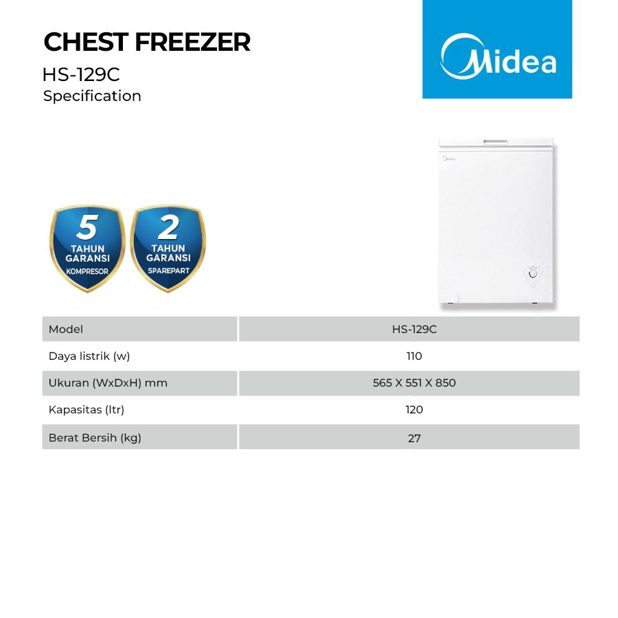 MIDEA HS 129 C CHEST FREEZER BOX LEMARI PEMBEKU 100L HS-129c
