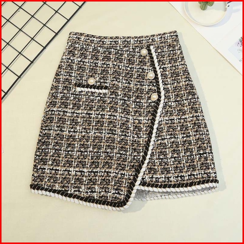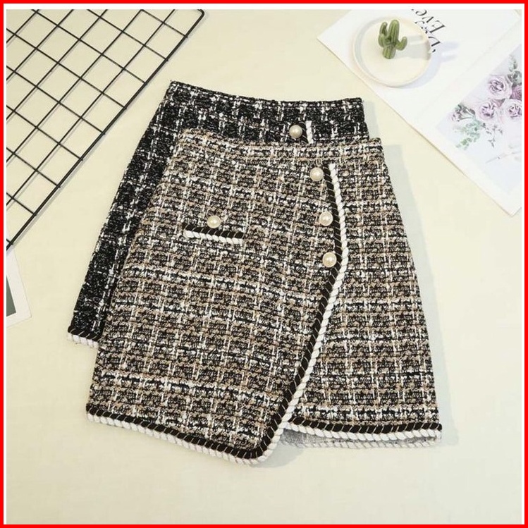Rok Pendek Korea Style Wanita Tweed Kotak-kotak
