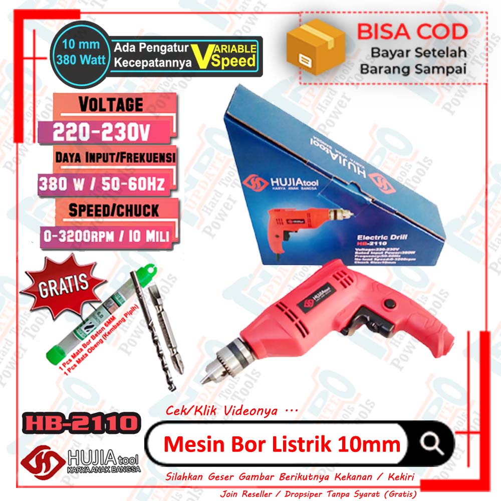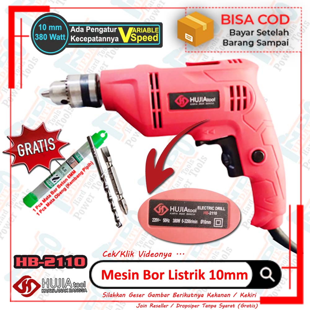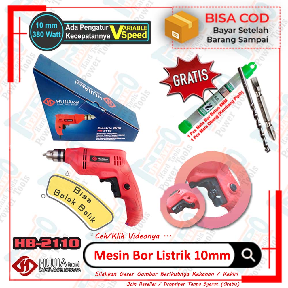 Mesin Bor Listrik 10mm Tangan HUJIA TOOLS Mata Beton Obeng Kayu Besi Jaringan Variable Speed - Bolak Balik / Reversible Termurah Ada Mode Maju Mundur 0123 Bisa Bolak Balik