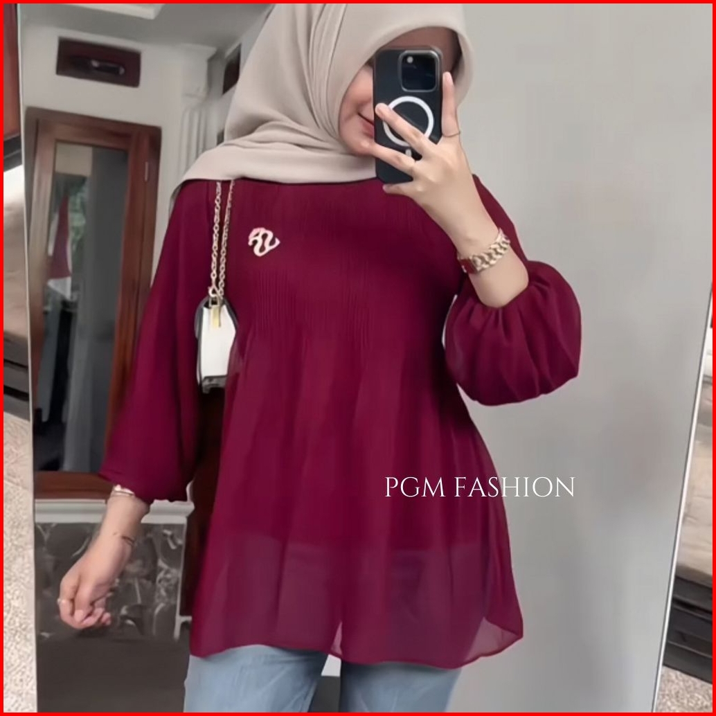 Kayra Blouse Plisket Lengan Balon Ceruty Babydoll