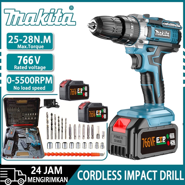 MAKlTA 766VF Mesin Bor Baterai cas 10mm bor listrik murah bor tangan baterai besi tembok Beton kayu - Cordless Drill bor cas