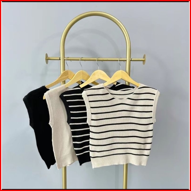 Tanktop Wanita Stripe Garis Atasan Rajut Wanita Crop Top Korean Panjang Cewek