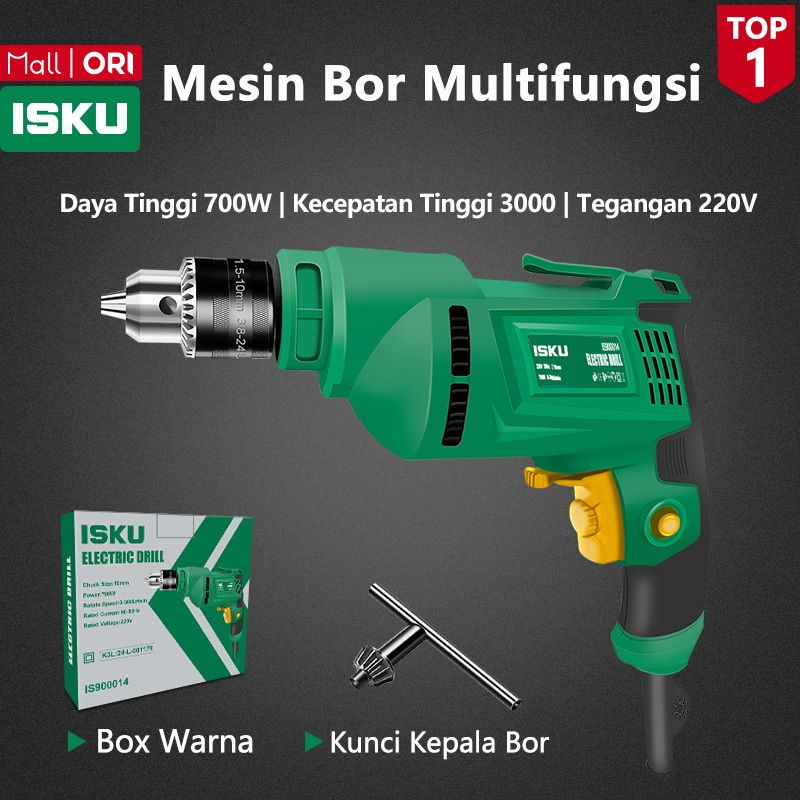 ISKU Mesin Bor Listrik Bolak 700W 220V Hand Electric Drill Berlaku untuk 1.5-10mm Mata Bor