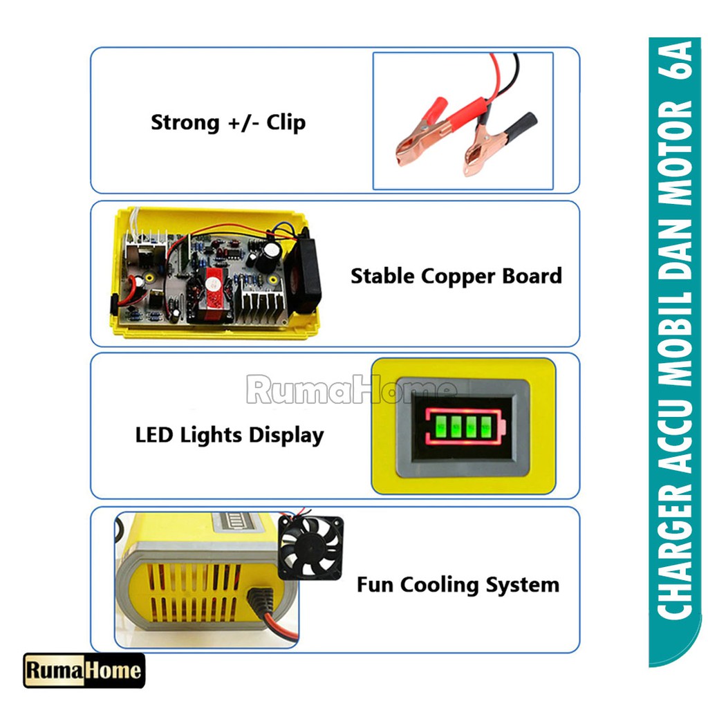 Charger Aki Portable 1A,2A, 4A, 5A, 6A, 8A /12v Mobil dan Motor / Otomatis Charger Accu / Alat Cas Aki