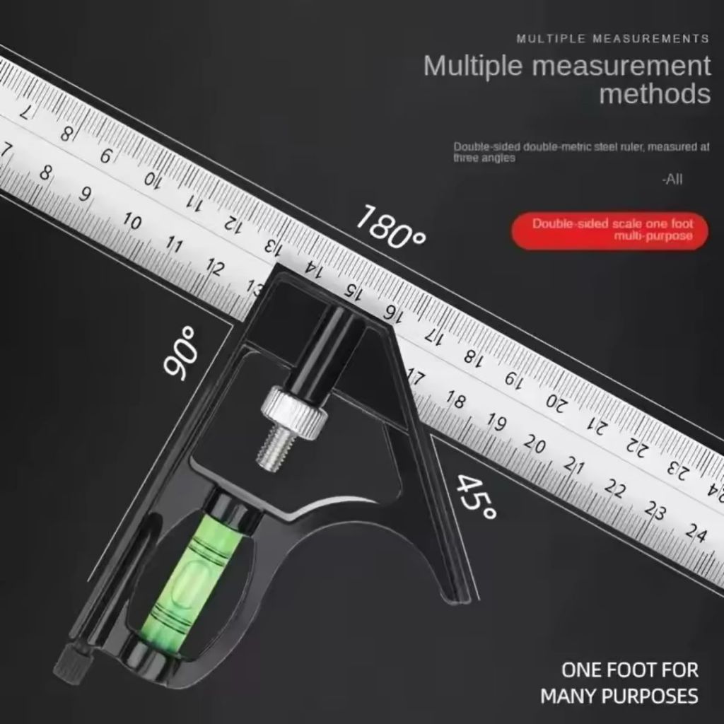 WM Garis Siku Tukang Serbaguna Siku L Kombinasi 30 cm Garis Siku Bahan Besi Baja dengan Waterpass
