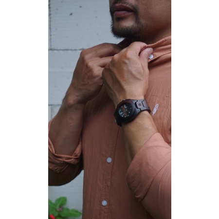 Halba Neon Jam Tangan Kayu Dan Kulit Fashion Dewasa Pria Dan Wanita