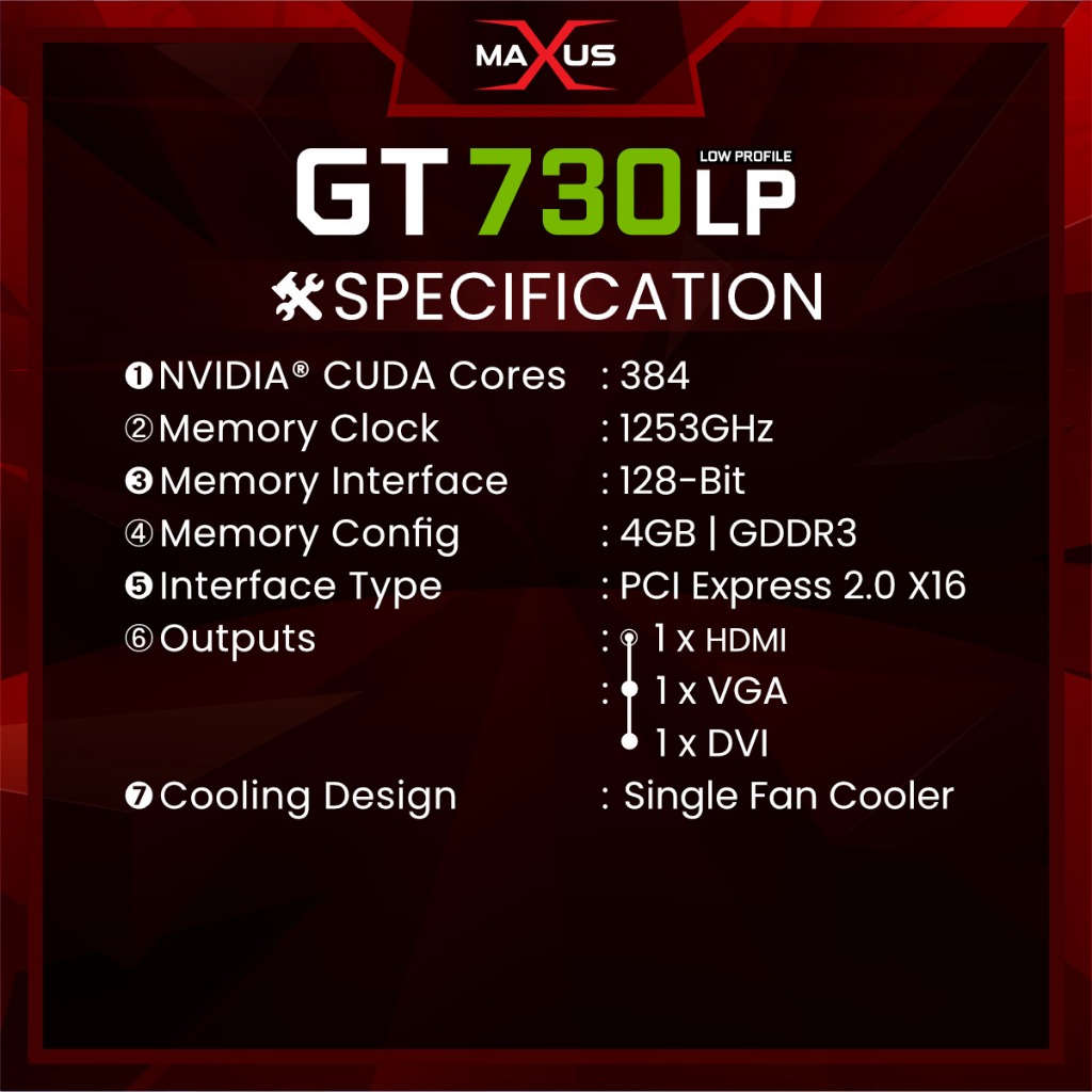 VGA MAXUS GT730 LP 4GB DDR3 128 BIT REAL CAPACITY RESMI