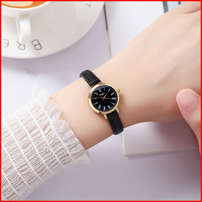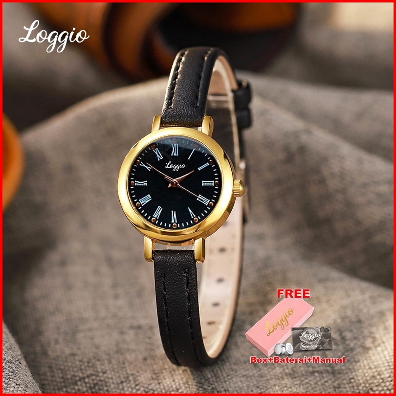 Loggio Jam Tangan Wanita Kulit Hitam Women Watches Bulat Kecil Terbaru Original Free Box