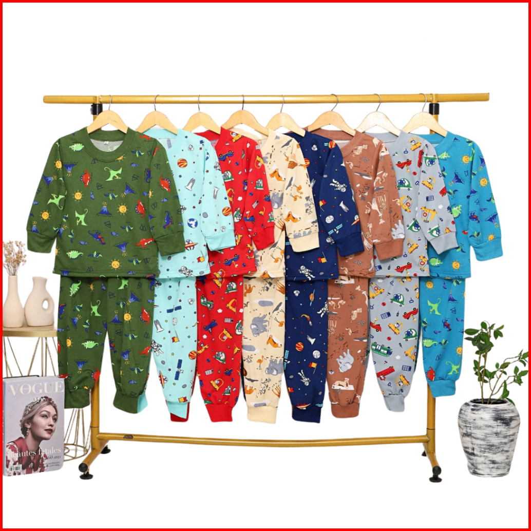 Iru Kids - Setelan Piyama Anak Printing Lengan Panjang Cowok Dan Cewek Unisex Usia 0-6 Tahun