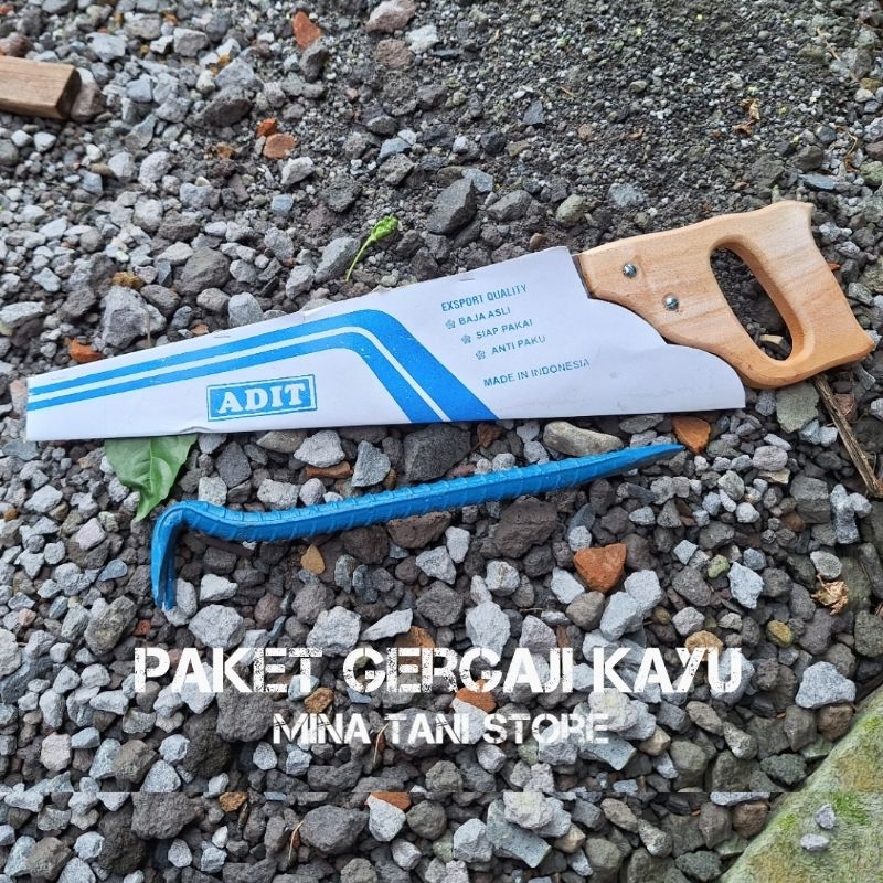 Paket tukang 3pcs lengkap - Gergaji kayu anti selip serbaguna -palu kambing -Linggis ulir kecil