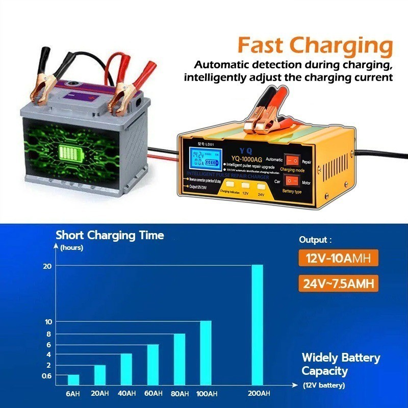 Charger Aki Mobil Lead Acid Smart Battery Charger 12V/24V 6-105AH - MF-2B - Yellow--Gtech