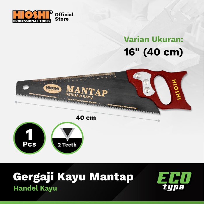 HIOSHI /Gergaji Kayu MANTAP/Tangan/Manual/Hand saw /Gorok/Gagang Kayu/POTONG/14 16 18 20 Inch - ECO