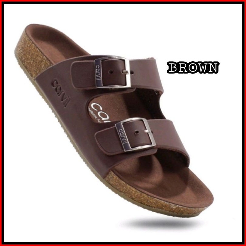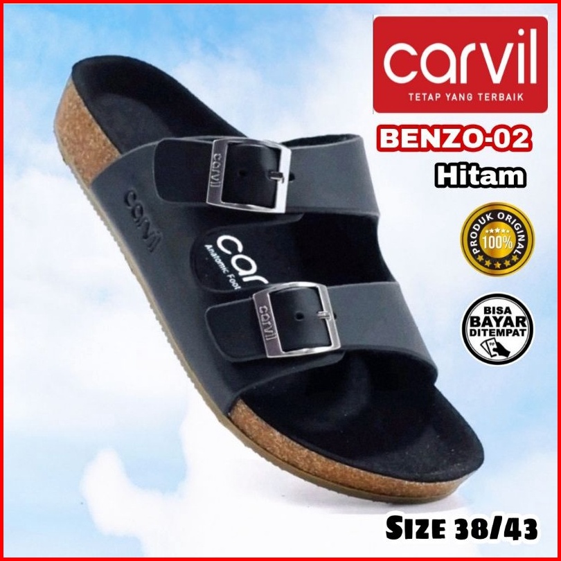 Sandal Carvil Selop Pria Dewasa Kekinian Sendal Benzo 02 Hitam Cokelat Size 38 Sd 44 Premium Berkualitas
