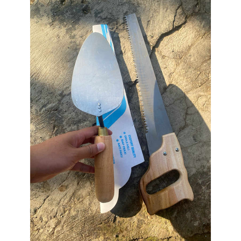 Paket tukang lengkap gergaji kayu baja anti selip dan sendok/cetok semen stainless steel-gergaji
