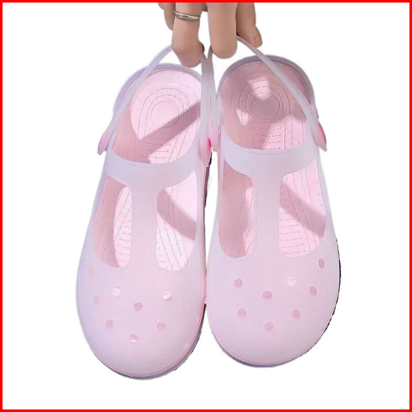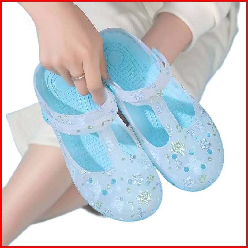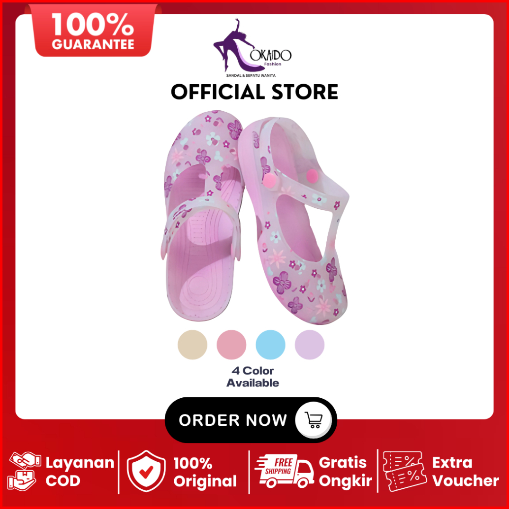 Okaido Sandal Wanita Clog Mules Selop Wanita Motif Bunga Bahan Jelly Bening Transparan