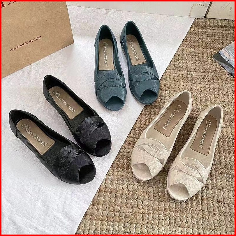 Lvr Moonsua Free Box Sepatu Flatshoes Wanita Kerja Model Silang Tg1726