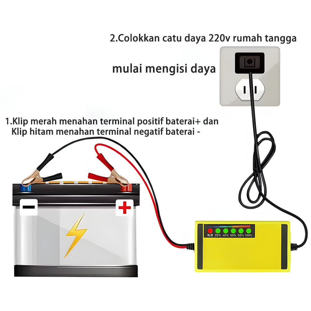 CARBOSS Charger Aki Portable 12V 2A/Charger Aki 12V3AH-20AH Alat Cas Aki Car Truck Motorcycle Battery Portable
