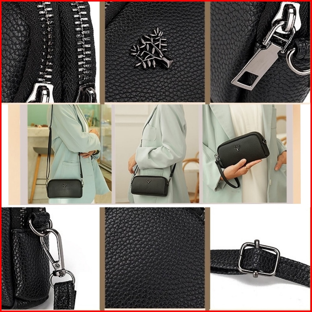 Tas Selempang Wanita Kulit Hitam Tervira Ta677b5 Tali Pendek Kecil Korea Fashion Simple Sling Bag Remaja Kekinian Brande
