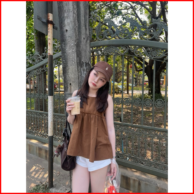 Gaury Linen Top Tank Top Blouse Atasan Wanita Korea Style