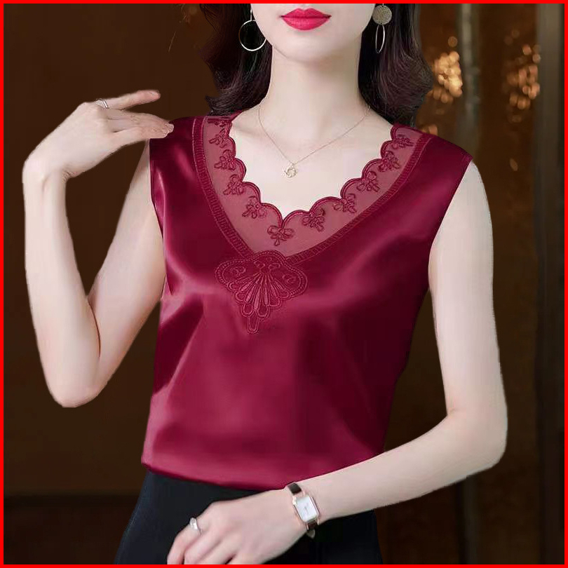 Sgl05 Atasan Tanpa Lengan Renda Sleeveless Atasan Import