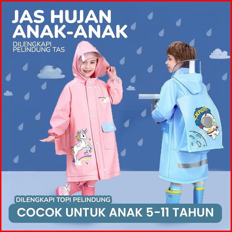 Bbak Jas Hujan Anak Extra Topi Bahan Pvc Motif Imut Untuk Anak Usia 3-12 Tahun