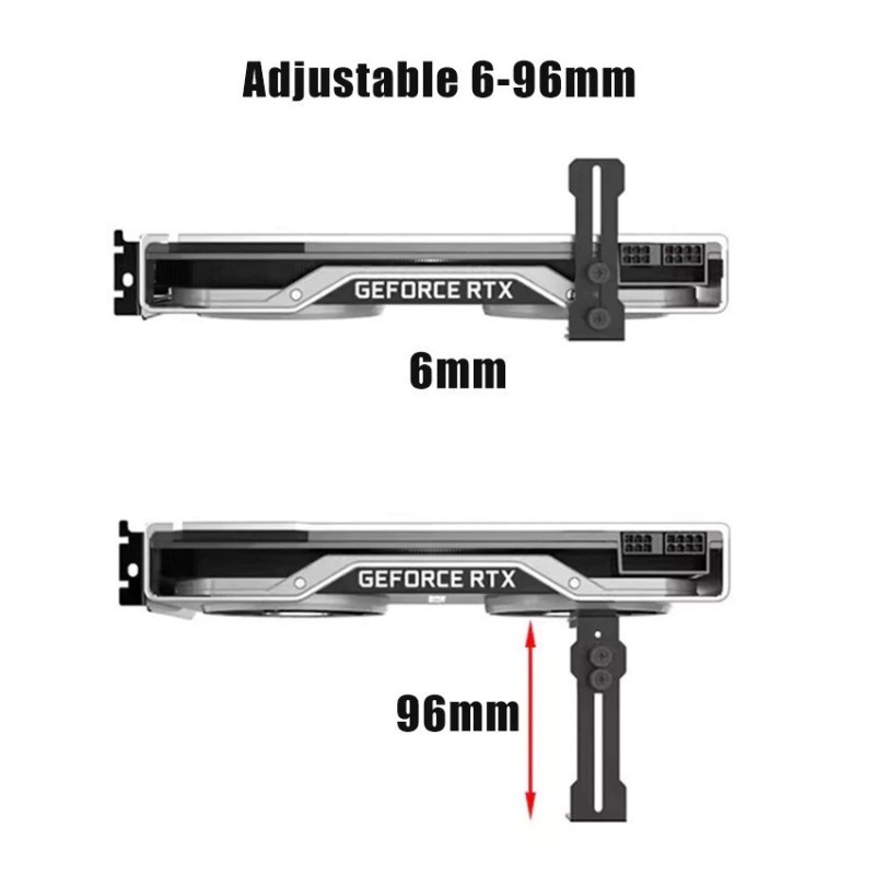 Retractable 6-96mm VGA GPU Holder Stand Anti Sag Aluminium Vertical VGA Holder Rotary VGA Graphic Card Support Bracket Bracket Penahan VGA