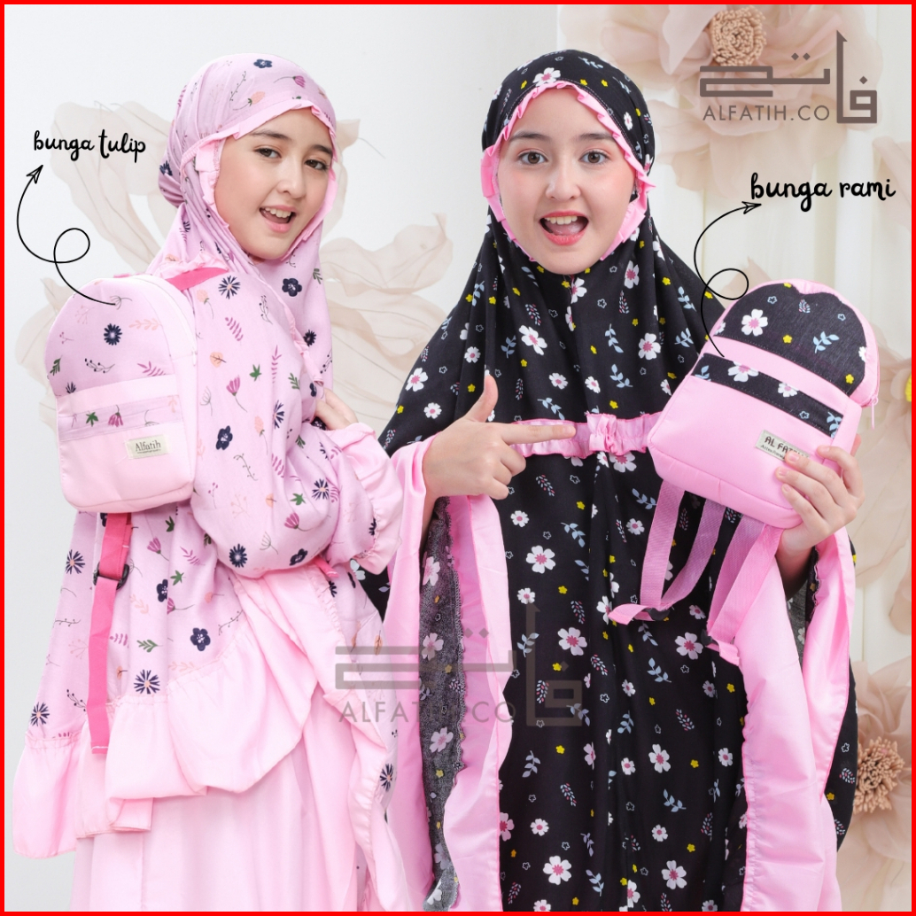 Mukena Anak Perempuan Rayon Motif Tas Ransel Usia 2 - 12 Tahun - Alfatihco