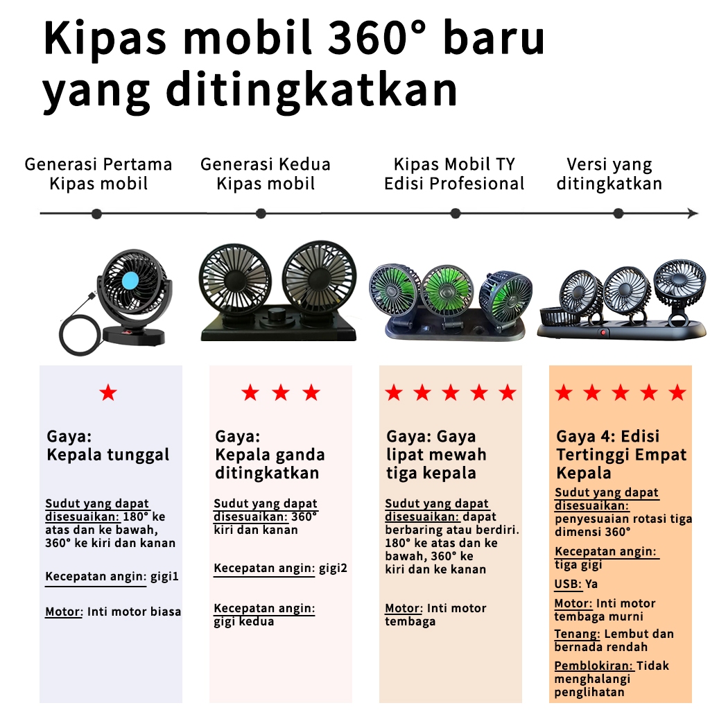 【NEW 2025】12-24 Volt Kipas Angin Mobil Car Fan Kipas Dasbor 3 kepala dingin ac truk dapat disesuaikan 360°